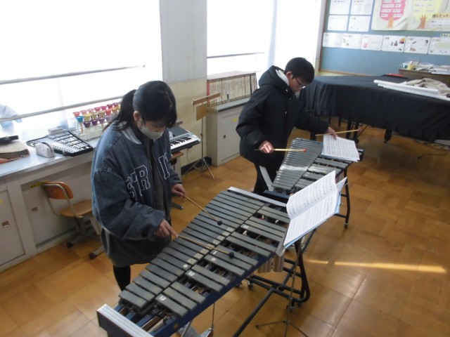 音楽室から、色々な楽器の音色がきこえています。6年生は音楽の時間に、それぞれのパートに分かれて練習をしていました。みんなの演奏が合わさると、どんな合奏ができるのでしょうか。とても楽しみです。
