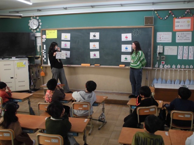 1年生はALTのドリュー先生と、英語での色の言い方について学習しました。様々な英語の表現をたくさん身につけてもらいたいです。