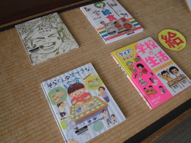 来週は、給食に関わるたくさんの人々に感謝の気持ちをもち、食について考える「給食週間」です。にじいろ図書館には、給食に関する本もたくさん置いてあります。