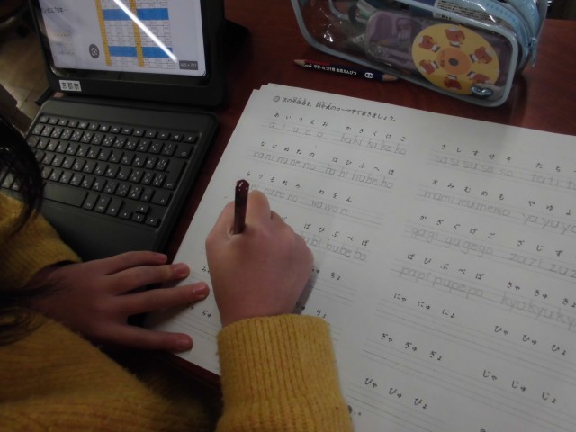 5年生はローマ字の復習に取り組んでいました。自分の課題にしっかりと向き合い、黙々と頑張っています。