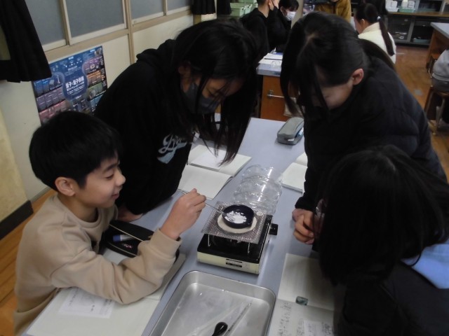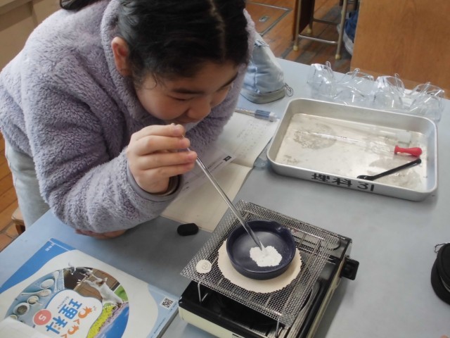 水溶液に溶けてるものは、取り出すことができるのでしょうか。5年生は今日も安全に気をつけて実験を行いました。水溶液を熱して姿を現した物の正体は、果たして何だったのでしょうか?