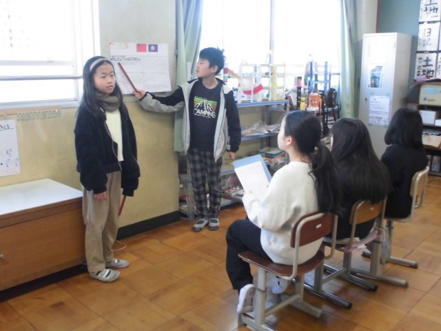 舞鶴市と交流している3つの都市について調べたことを発表しました。自分が調べていない都市について友達の発表を聞いて学習をする。発表する側も聴く側もより責任をもって取り組むことができました。