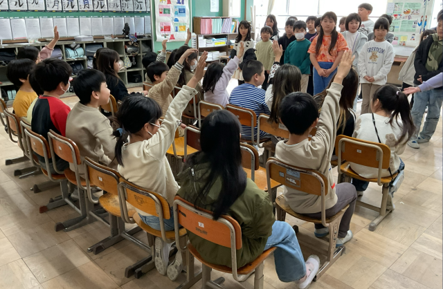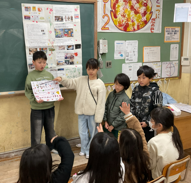 3年生は総合の学習で調べたことを、2年生に発表しました。