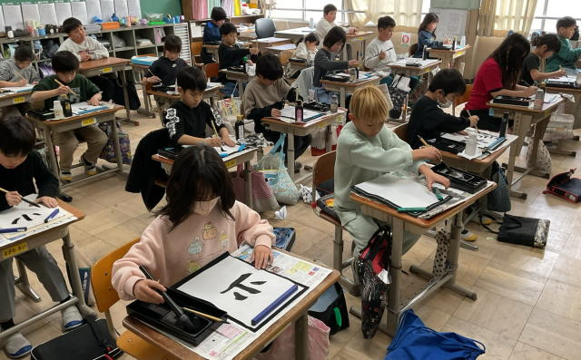 とめ、はね、はらいの筆使いを意識しながら取り組みました。