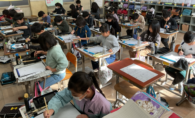 3年生の書写では、1年間の学習のまとめとして、「光」という漢字を書きました。