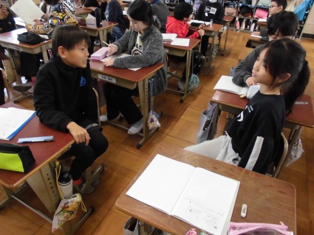 直方体と立方体の面と辺の関係について色々な問題に挑戦しています。また、平面や空間の位置を表すことも、直方体と立方体を使うとより分かりやすくなりますね。箱のイメージを頭の中に浮かべてみましょう。