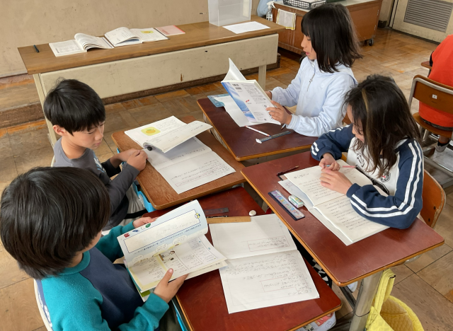 グループで読み合ったり、登場人物などの確認をしたりしました。