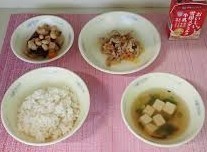味噌汁やすまし汁、スープのような汁物は、具が下に沈んでいることがあります。下からよく混ぜて、具と汁をバランスよく食器に盛り付けます。