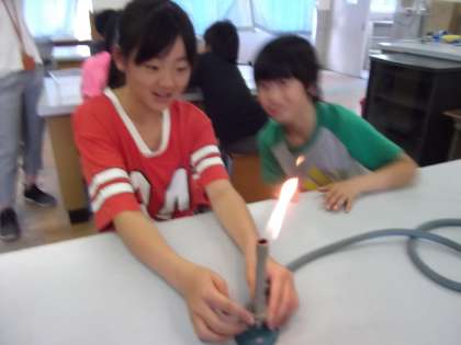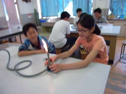 理科の時間の残りで,ガスバーナーの使い方一人一人が実践しました。