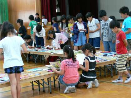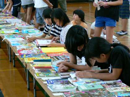 全校児童一人一人が自分の読みたい本を選びます。