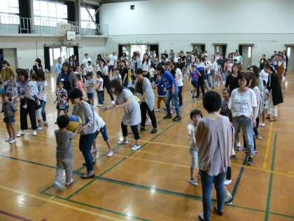 ボール送りゲームで親子で楽しむ姿がいっぱい見られました。