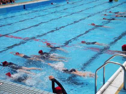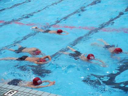 ふし浮き,バタ足でプールの横向きに挑戦しました。