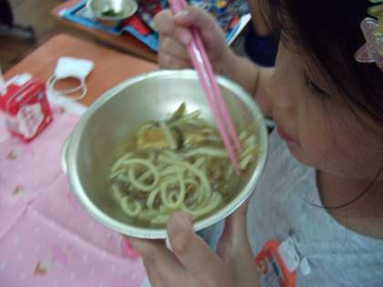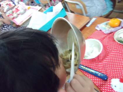 今日の給食の「カレーうどん」は子どもたちには大好評でした。