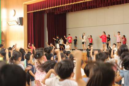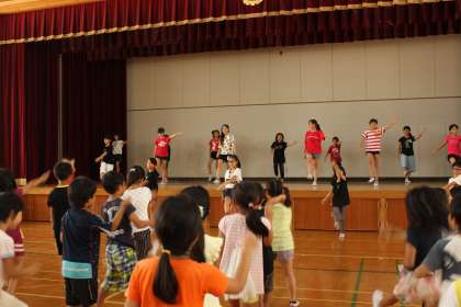 中間休みに全校児童が体育館に集まり,ダンスを踊る集会が,本日行われました。