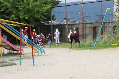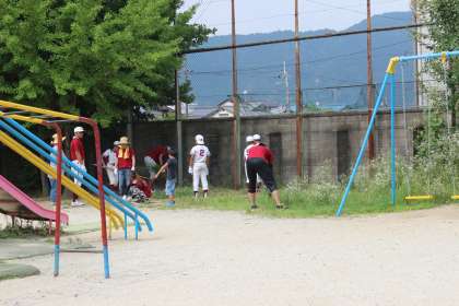 子どもたちも地域の方々も草抜きを頑張っています。