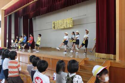 今日の中間休みは,黄組みの応援練習でした。