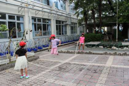 1年生が,回数を数えながらなわとびを楽しんでいました。