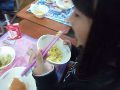 変り煎り卵もお箸で姿勢よく食べていました。