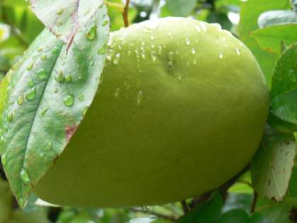雨上がりのカリンの実です。