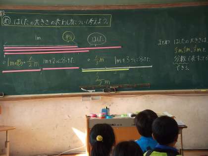 はしたの大きさの表し方と3分の1,3分の2のような分数を考えました。