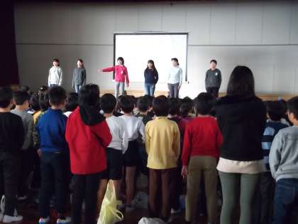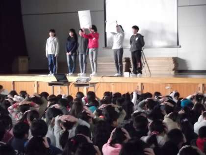 児童会本部からは,人権月間にちなんで,劇とクイズをしました。