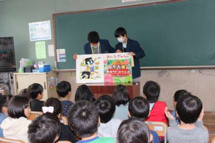1年・2年・ひまわり学級で2冊していただき,「楽しかった。」「おもしろかった。」と感想を述べていました。