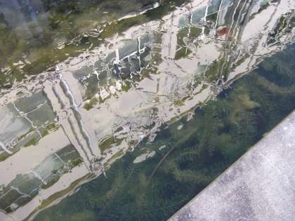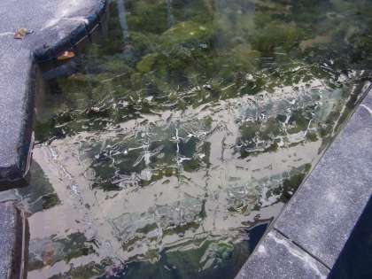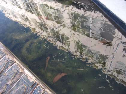 0°Cの外気温。池に張った氷に,校舎が映っています。