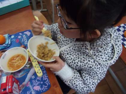子どもたちは楽しみにしていて,お替りをしたり,大盛を食べたりしていました。