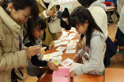 子どもたちが店員・お客さんになり,品物を売り買いしました。