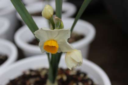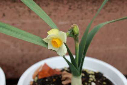 スイセンの球根を頂き,土に埋め,毎日水をあげました。