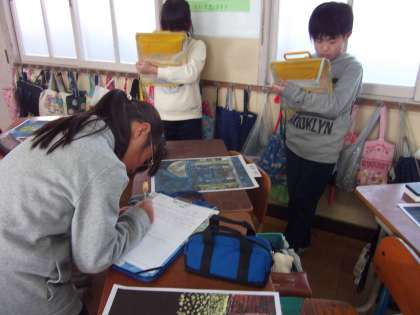 5年生は「版画」と「お話の絵」の鑑賞会をしました。