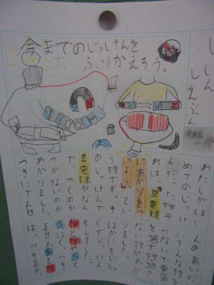 3年生は理科で学習した「豆球にあかりをつけよう」や「じしやくのふしぎを調べよう」で分かったことや発見したことを,「実験新聞」みまとめました。