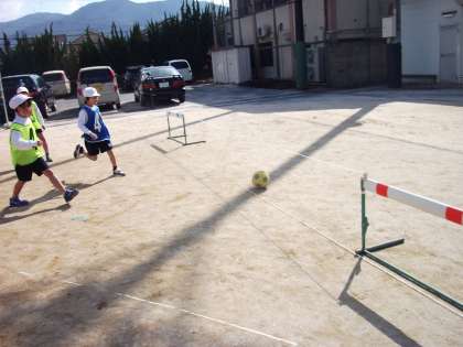 2年生のボールけりゲームもどんどん進み,チームワークもどんどん良くなり,点数をたくさんとことができるようになってきました。