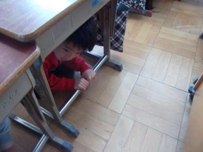 金曜日のように「シェイクアウト」で机の下にもぐります。