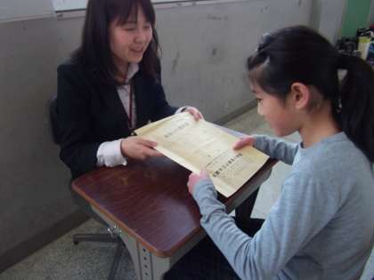 各教室で今年の頑張りの証の「通知票」が渡されました。