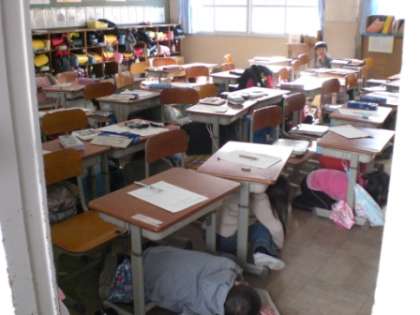 一次避難として,机の下に入り,揺れがおさまるのを待ちました。