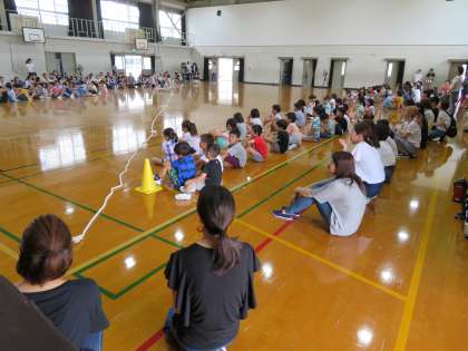 今日は,2年生のふれあい集会がありました。保護者の皆さん,蒸し暑い中たくさんお越しいただきありがとうございました。子どもたちはとても喜び,楽しく活動することができました。企画・準備をしてくださった保護者の皆様,ありがとうございました。