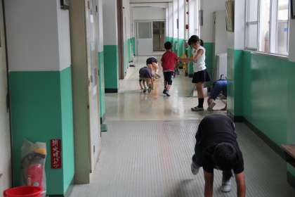 昼休みに元気よく遊んだ後の清掃の時間です。