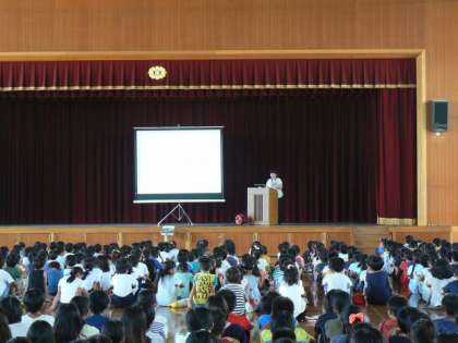校長先生から1学期のふり返りや夏休みに挑戦してほしいこと,安全についての話などがありました。