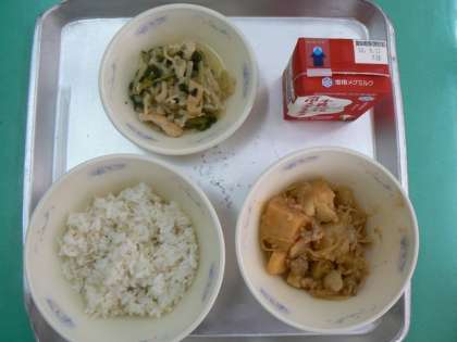9月6日(木)の給食の献立は,むぎごはん,牛乳,肉じゃが(ピリカラみそ味),切干し大根の煮つけでした。