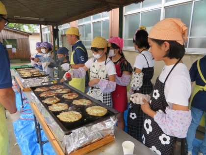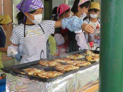 8日(土)のふれあい土曜塾は、地域の民生委員さんにお世話になり、壱銭洋食の会を行いました。今年は、6年生の希望者も一緒に壱銭洋食を焼いて、参加者にふるまってくれました。枚数を焼いていくうちにだんだん手際もよくなってきました。また、家でも作ってくれるとうれしいです。