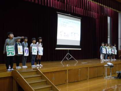 11月9日(金)に3年生の学習発表会がありました。「山階南マモルンジャー」として,校区の安全に関わってくださっている方々と交流したり,自分たちが校区の安全のためにできることを考えたりする学習を進めてきました。発表本番では,自分たちが調べてきたことや校区の安全について思っていること・感じたことを堂々と発表することができました。