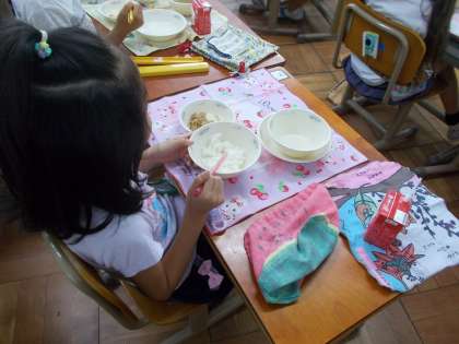 祇園祭のころが,はもの一番おいしい時期と言われているそうです。なので京都では,祇園祭を「はも祭り」というほど,はもはかかせないものだとか。今日の給食では,「こはくあげ」として登場しました。