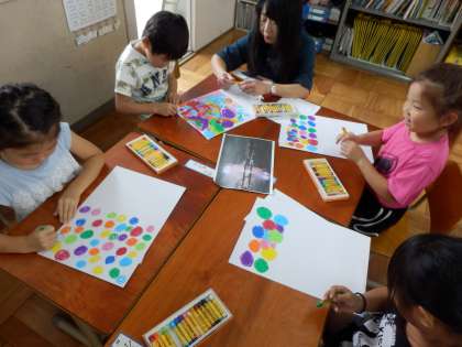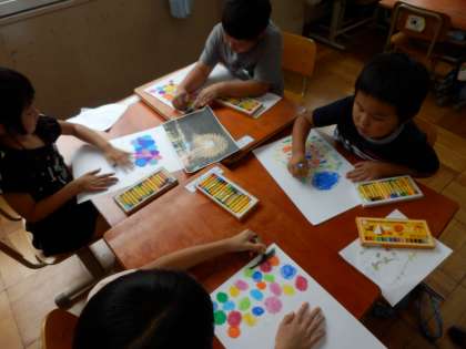 図工の時間に「お話を絵に描こう」の学習をしています。