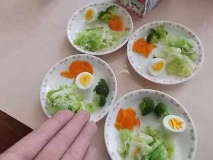家庭科「おいしい楽しい調理の力」の学習で,「ゆで野菜とゆでたまごづくり」に挑戦しました。子ども達は運動会の疲れも見せずに,しっかりと考えて活動する姿が見られました。見た目のバランスを考えて盛り付けし,ドレッシングも各グループで考えました。