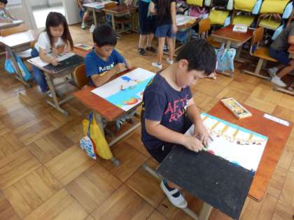 クレパスをしっかり握り,丁寧に色を塗ことができるようになりました。