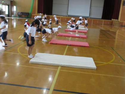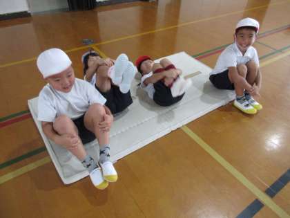 「マットあそび」の学習に慣れてきた子ども達です。「前回り」の練習と「ゆりかご」の練習をしました。できなかった動きも練習することでできるようになると, 思わず笑みがこぼれてきました。