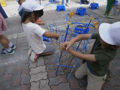 生活科の時間に,あさがおのツルを輪っかにして
