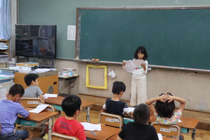 今日は、昨日まとめた学校での1日をクラスのみんなに発表しました。「そんなことしてるんだ!」と友達の1日に驚いている子もいました。