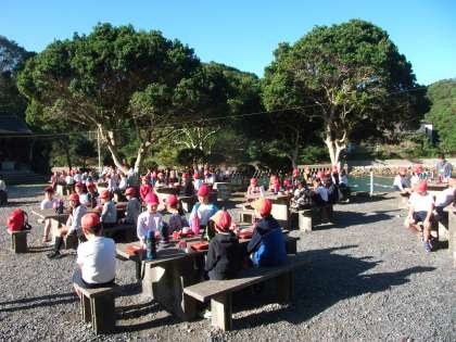 朝ごはんを食べました。海の見える場所での食事で,気持ちよかったです。みんなパクパク食べていました。
